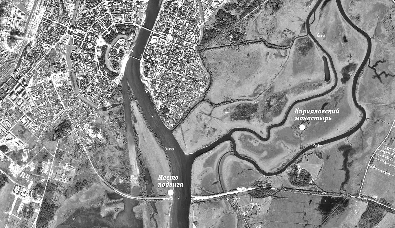 Ещё через три месяца, 29 января 1942 года, в устье Малого Волховца в нескольких сотнях метров южнее Кирилловского монастыря при уничтожении опорного пункта противника в районе опор, так называемых «быков», недостроенного в 1917 году железнодорожного моста дороги Петербург – Орёл подвиг самопожертвования совершат бойцы бывшей 3-й танковой дивизии, переформированной к концу декабря 1941 года в 225-ю стрелковую. Сержант Иван Герасименко, красноармейцы Александр Красилов и Леонтий Черемнов закроют собой амбразуры вражеских дзотов. Этот подвиг станет первым коллективным в истории войны.
