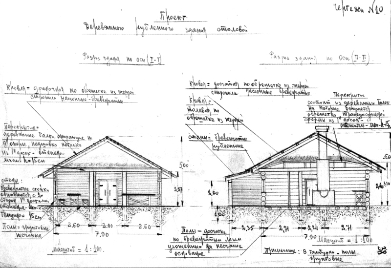 Проект здания столовой учебного пункта ЛШПД на ст. Хвойная. 1943 г. ЦГАИПД СПб. Ф. Р-116л. Оп. 10. Д. 113. Л. 38