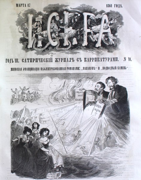 – Случается. С крымской войны завели по лавкам в складчину человек по десяти вместе газеты выписывать. Сначала-то оно было больно занимательно; про военные подвиги писали, да про сражения, ну, а потом-то уж стало и не то, про школы завели писать и прочее, незанимательно стало, и пишут-то как-то мудрено, а все не отстают от газет, привычка сделана. Молодые-то купцы моду повели «Искру» выписывать; все своих знакомых в карикатурах ищут. Чуть найдут кого схожего по бороде или по чему другому и бегают из лавки в лавку, да хохочут. «Вот, мол, Павла Ефимыча в «Искре« представили, усы его, к верху задранные, – ей Богу его». Смеху с ними не оберешься.