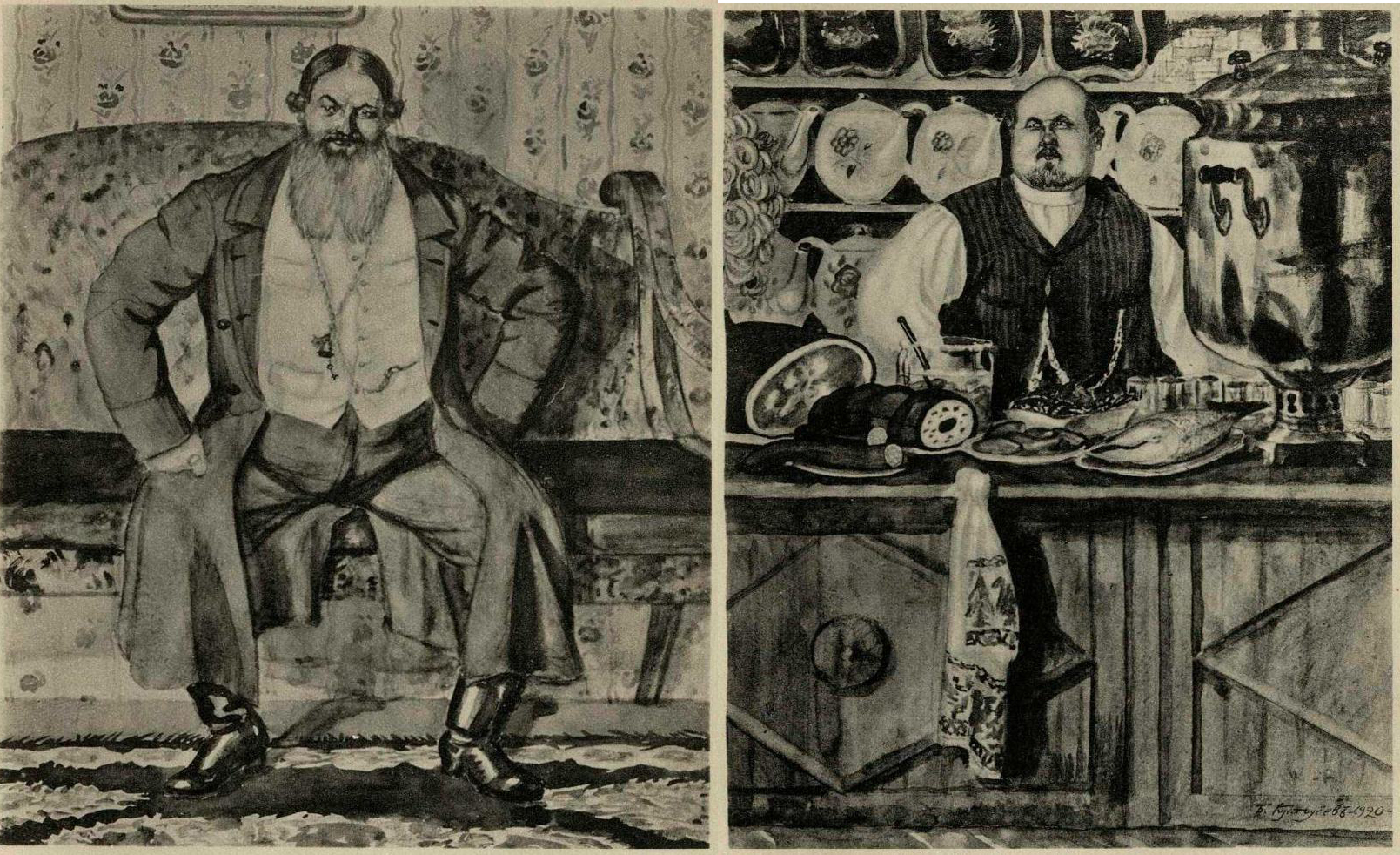 Трактирщик. Купец. Иллюстрации из книги: Русь: Русские типы Б.М. Кустодиева / Слово Евг. Замятина. Петербург: Аквилон, 1923